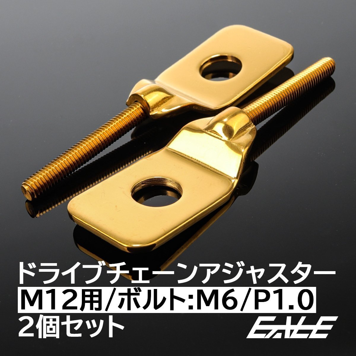 - チェーンアジャスター M12アクスルシャフト用 ボルト部 M6 P1.0 チェーン調整 ゴールド 2個セット TH0411