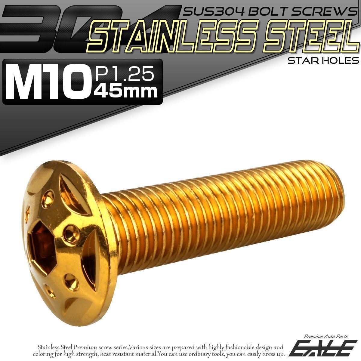 - SUS304 フランジ付き ボタンボルト M10×45mm P1.25 六角穴 ゴールド スターホールヘッド ステンレス ボルト TR0697