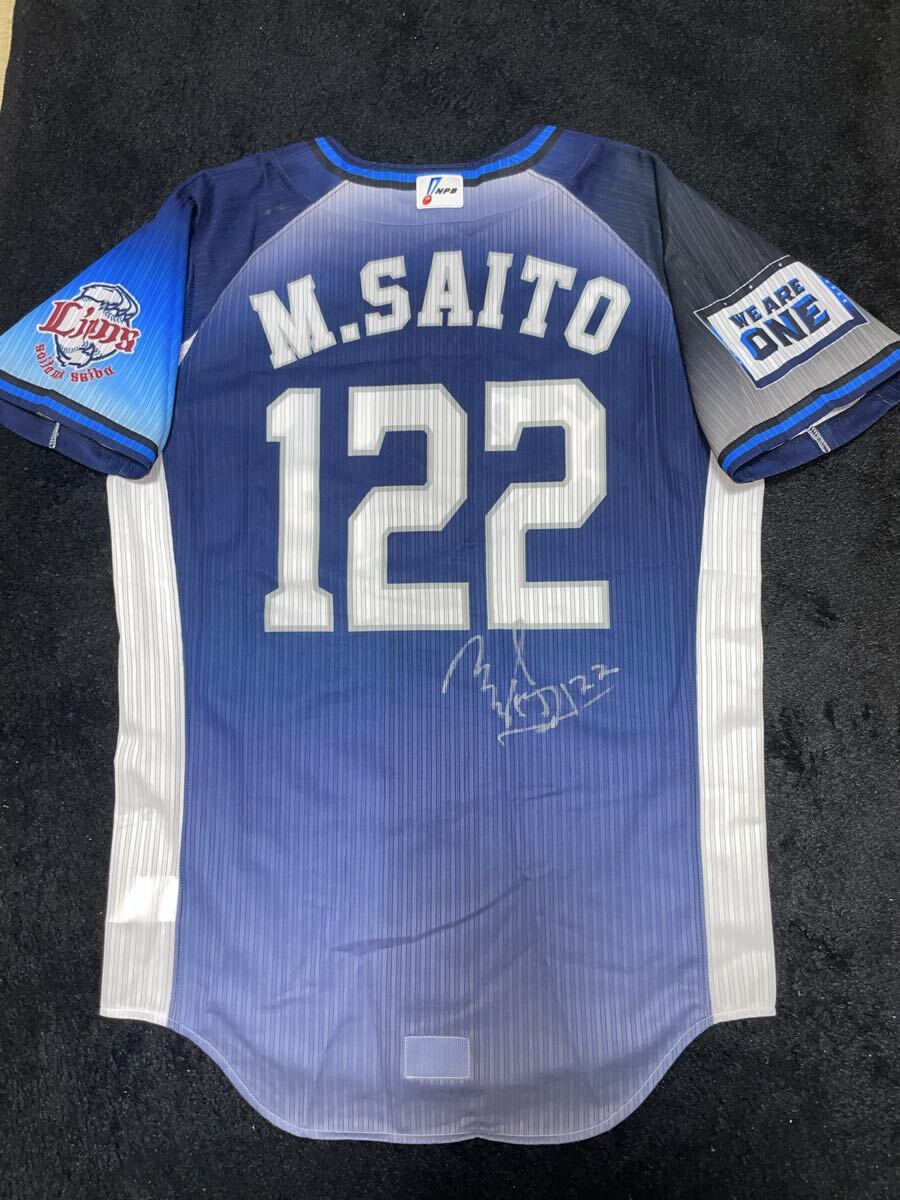 - 即決 送料無料 埼玉西武ライオンズ 斎藤誠人 プロコレ ユニフォーム マジェスティック Sサイズ 昇華プリント 直筆サイン入り ビジター