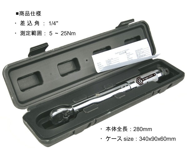 1/4 トルクレンチ 測定範囲5~25Nm J081
