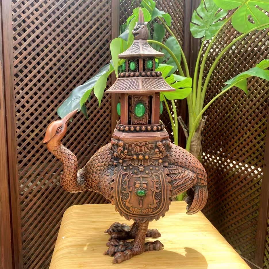 - 香炉 時代旧蔵 清時代 古銅鳳凰塔型燻香炉 銅製 仏教古美術 細密細工 廃寺旧蔵 廃寺買出品 古置物 中国古玩 MS6-030610