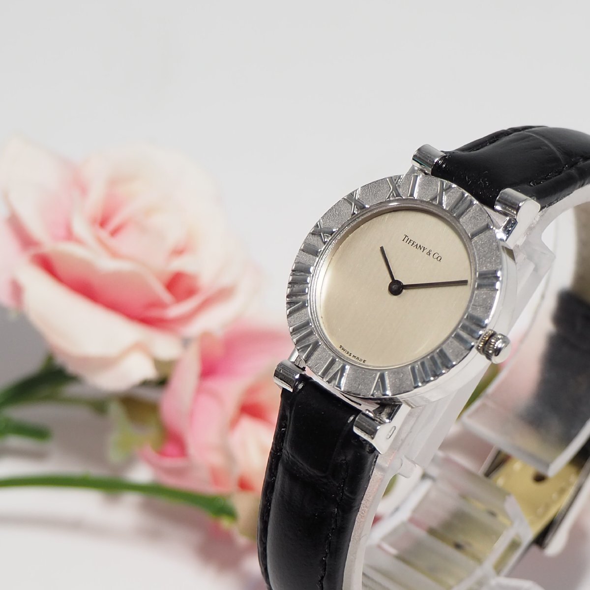 ★★★★ ティファニー TIFFANY&CO アトラスミニ SV925 革ベルト 24mm レディース 腕時計 H225 中古★★★★