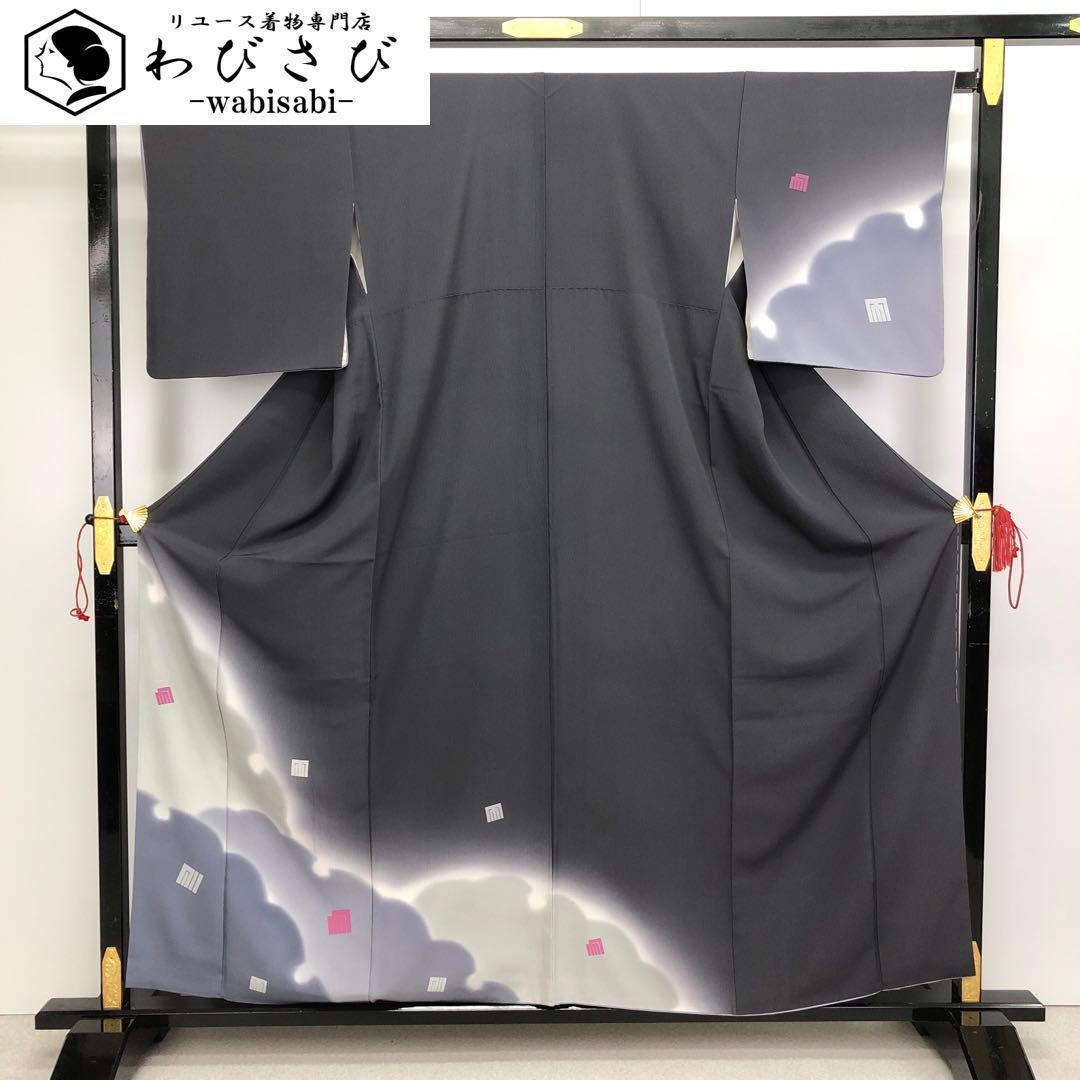 鶴の音羽色の縮緬に雪輪柄の暈しに飛び柄の源氏香の柄裄がデザインされた素敵なお品でございます。