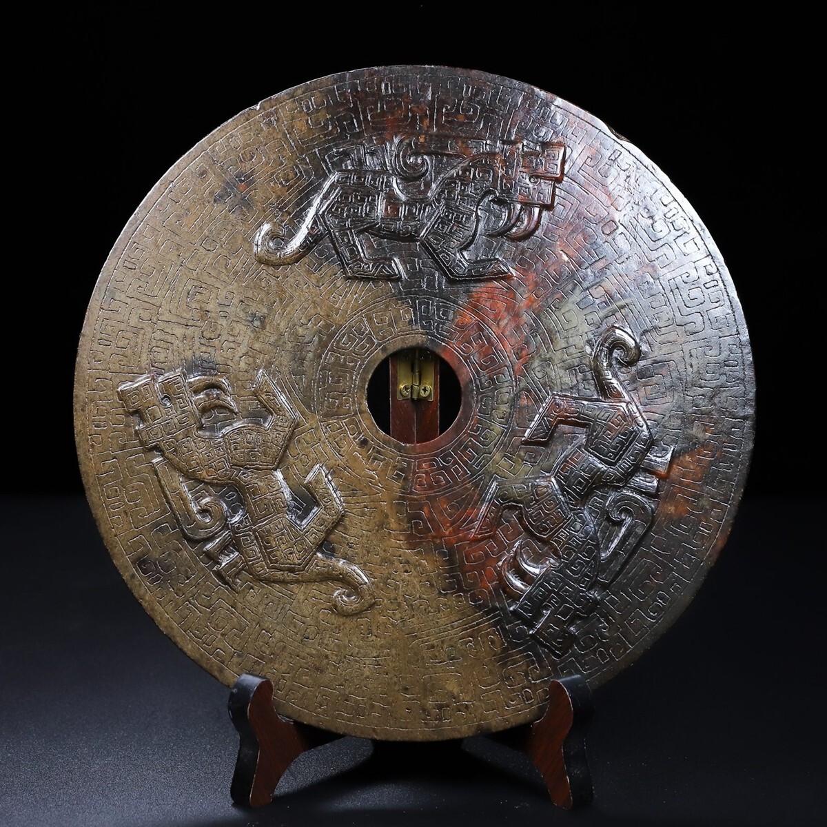 - 「時代物 和田玉 高古玉彫り 満工 玉璧」極細工 擺件 中国古賞物 古美術 旧蔵出