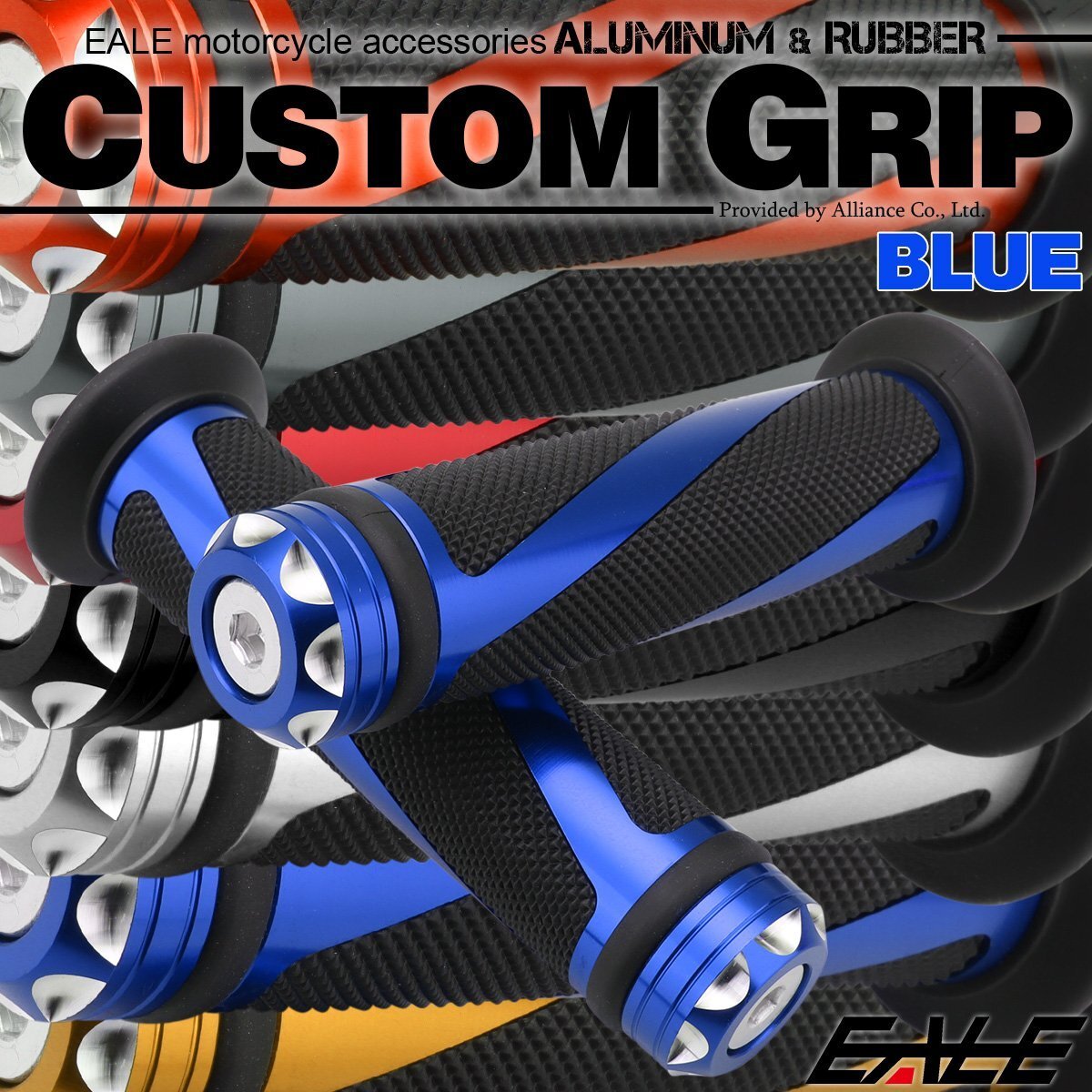> バイク グリップ ハンドル アルミ ラバー バーエンド付き 22.2mm用 ブルー 左右セット カスタム ドレスアップ S-575-B