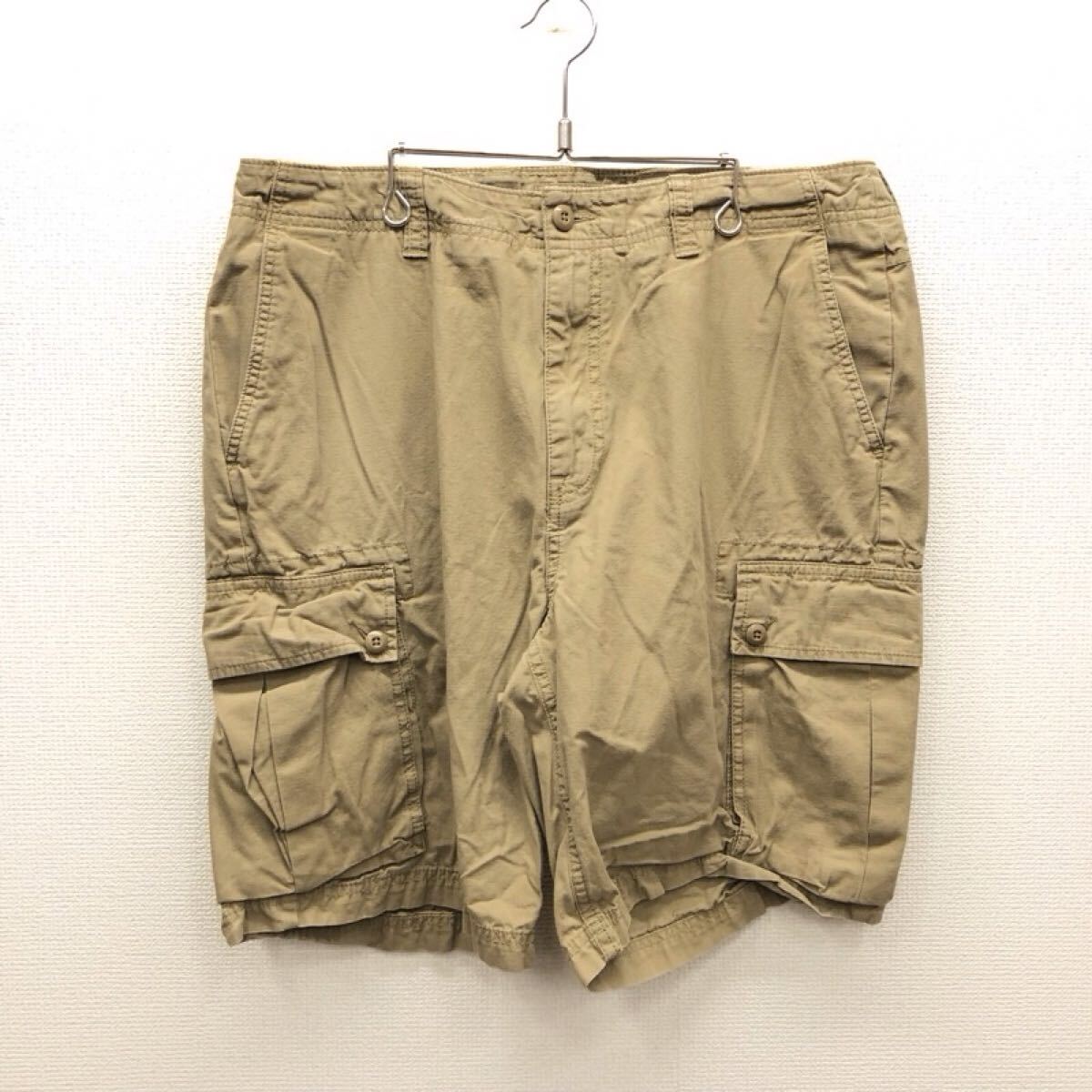 - 【GI027】NAUTICA W34 カーゴハーフパンツ ベージュ アジャスター付き メンズブランド古着 ノーティカ ショートパンツ 送料無料