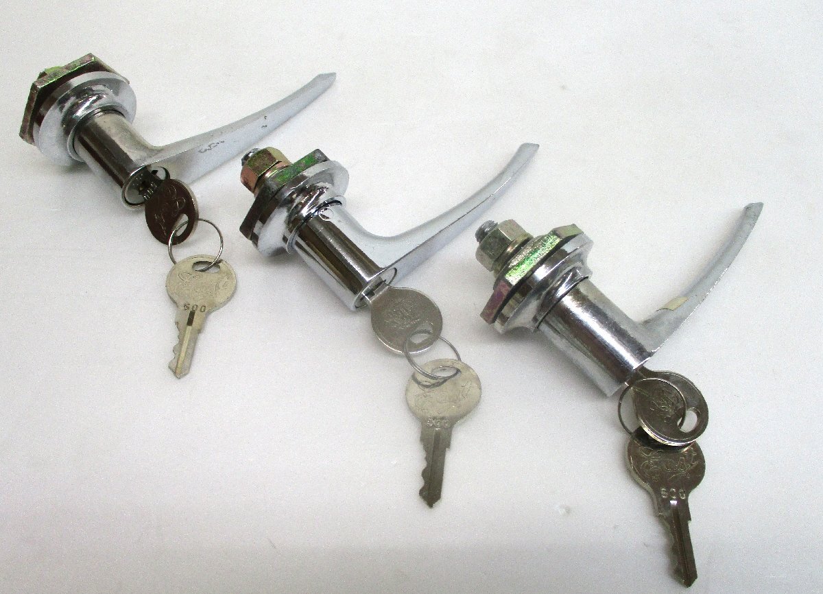 - 笹型ハンドル 3個セット 鍵2個 ナット付 ハンドルの長さ9.5cm 未使用 101427 ★