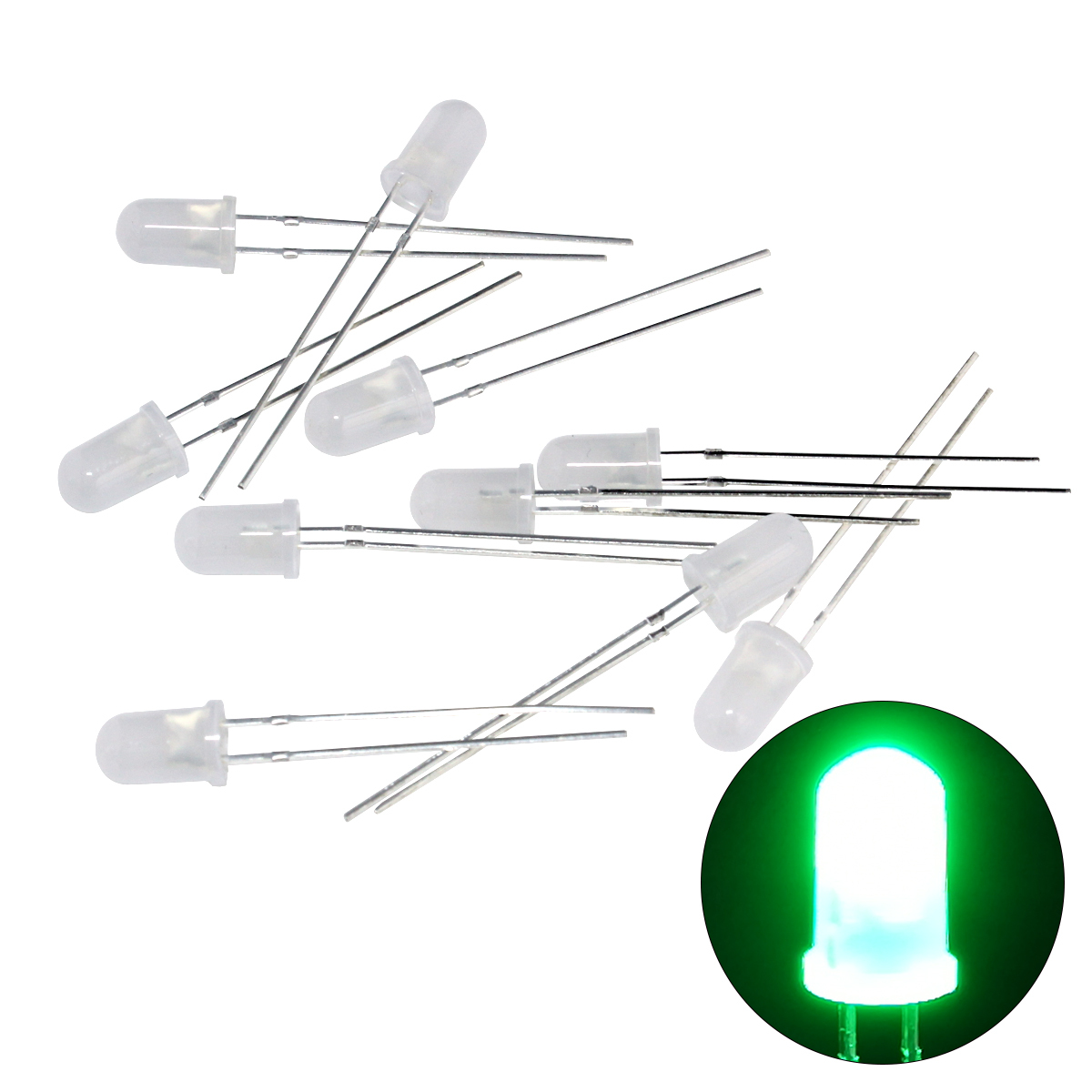 - LED 発光ダイオード 5mm 砲弾型 緑色 乳白色レンズ 2000-3000mcd 517-520nm 3.0-3.2V 100個