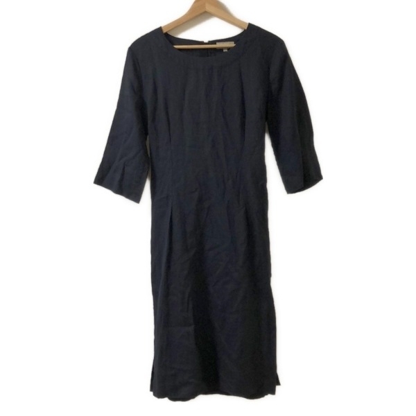 - マーガレットハウエル MargaretHowell サイズ2 M - ダークネイビー レディース クルーネック/七分袖/ロング/リボン ワンピース