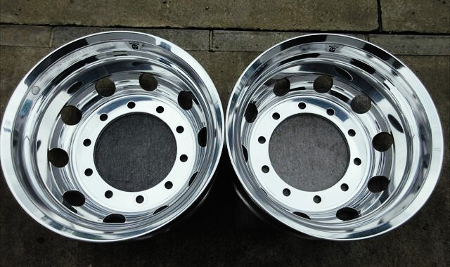 > 送料無料 新車外し アルコア デュラブライト アルミホイール ISO 平面座 22.5×7.50 10穴 リア用 2本セット その2