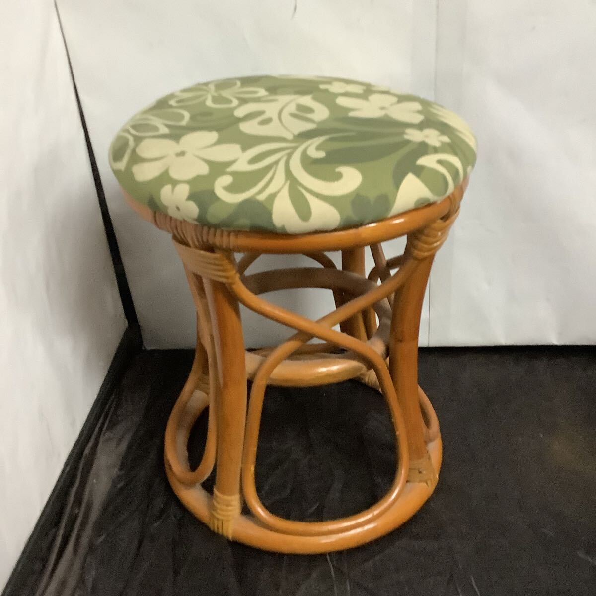 - 籐 丸椅子 腰掛け ラタン スツール 昭和レトロ アンティーク