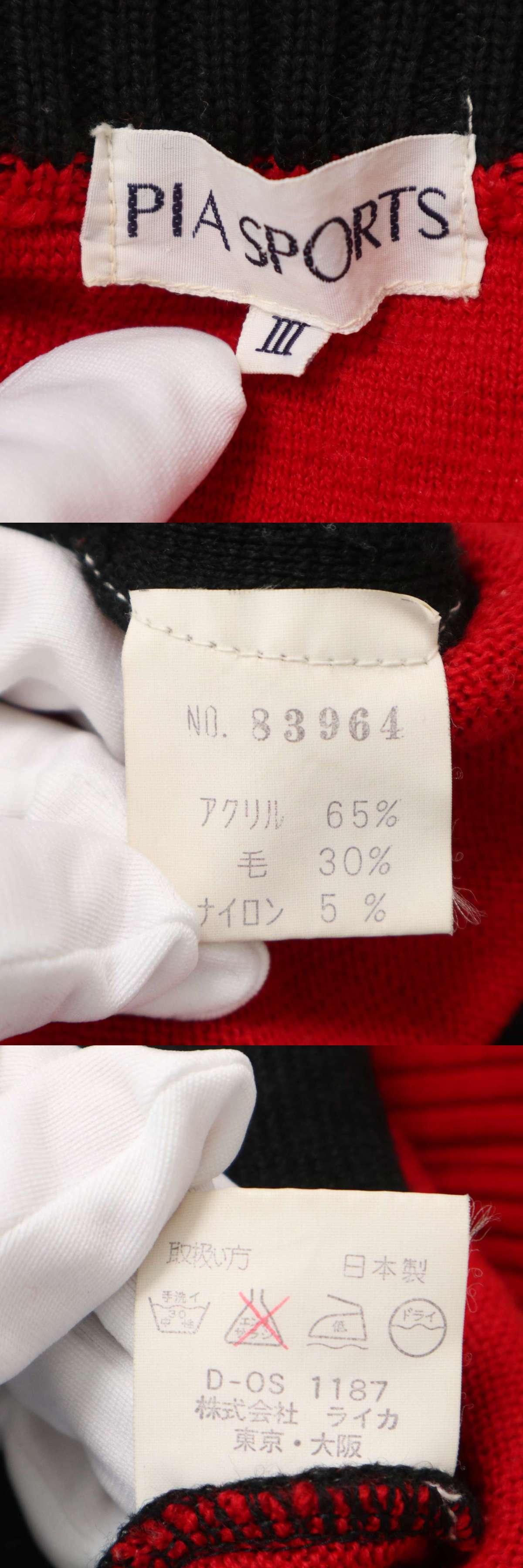 - 【美品】PIA SPORTS ピアスポーツ 秋冬 ウール混 ロゴ★ 切替 ニット ブルゾン ジャケット Sz.3 メンズ 日本製