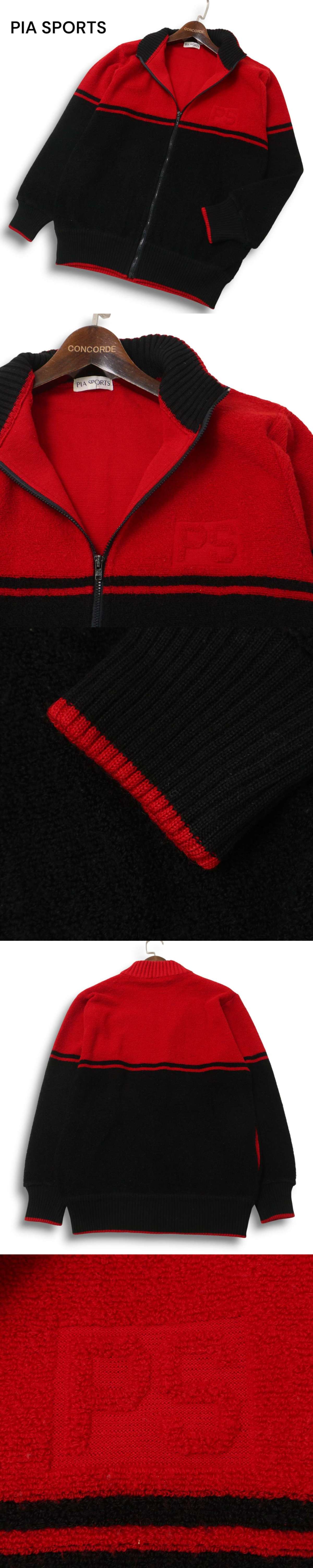 > 【美品】PIA SPORTS ピアスポーツ 秋冬 ウール混 ロゴ★ 切替 ニット ブルゾン ジャケット Sz.3 メンズ 日本製
