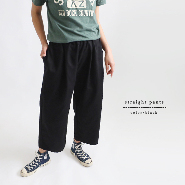 - 秋のパンツ祭り 90cm丈 コットンチノ生地 チノパン 誰にでも似合う定番パンツ ストレート ゆったり ブラック U66A