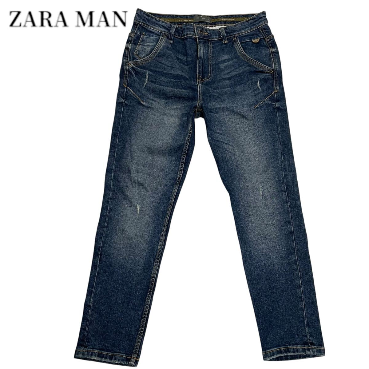> ZARA MAN /ザラ マン メンズ スリムストレッチ デニムパンツ ジーンズ ダメージデニム インディゴ W30 O-2564