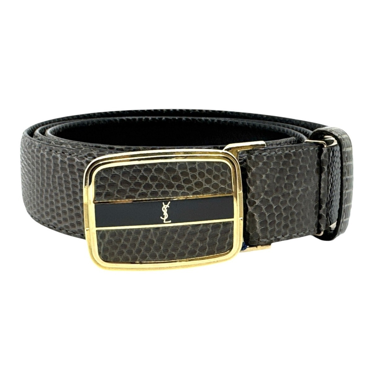 - 未使用 イヴサンローラン ロゴ バックル ベルト リザードレザー 日本製 グレー系 25I05