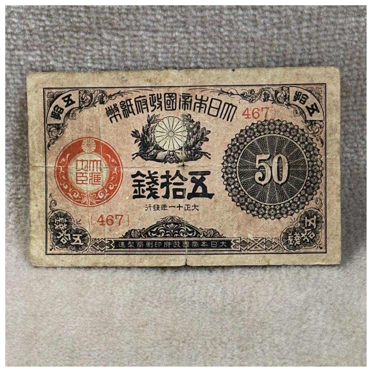 - 大正小額紙幣50銭(大正11年銘) 467組 OPPフィルム付《271》