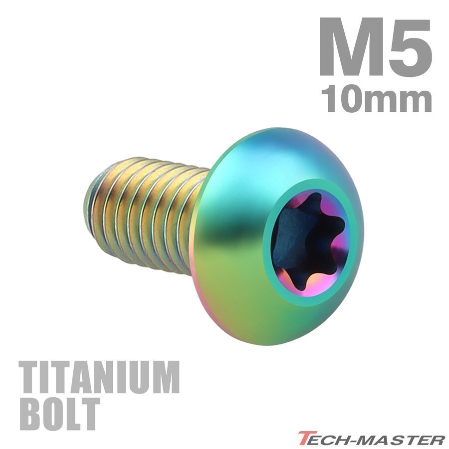 > M5×10mm P0.8 64チタン合金 トラスヘッド トルクス穴付き ボタンボルト 焼きチタンカラー 虹色 車/バイク/自転車 ドレスアップ 1個 JA460