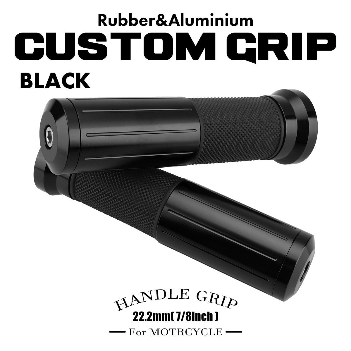- バイク カスタム グリップ アルミ×ラバー 左右セット バーエンド 付き 非貫通タイプ 22.2mmハンドル用 ブラック SZ578-BK