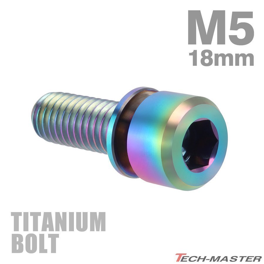 > M5×18mm P0.8 64チタン合金 ワッシャー組込 六角穴付き キャップボルト 焼きチタンカラー 虹色 車/バイク 1個 JA314