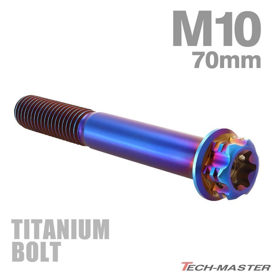 > M10×70mm P1.25 64チタン合金 ヘキサゴン トルクスヘッド キャップボルト フランジ付き 焼きチタンカラー 車/バイク/自転車 1個 JA1078