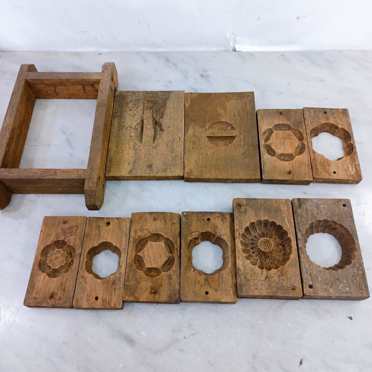 - 和菓子 木型 菓子型 落雁 木彫 古道具 木製 製菓 菊 花 模様 木製菓子型 アンティーク コレクション まとめ