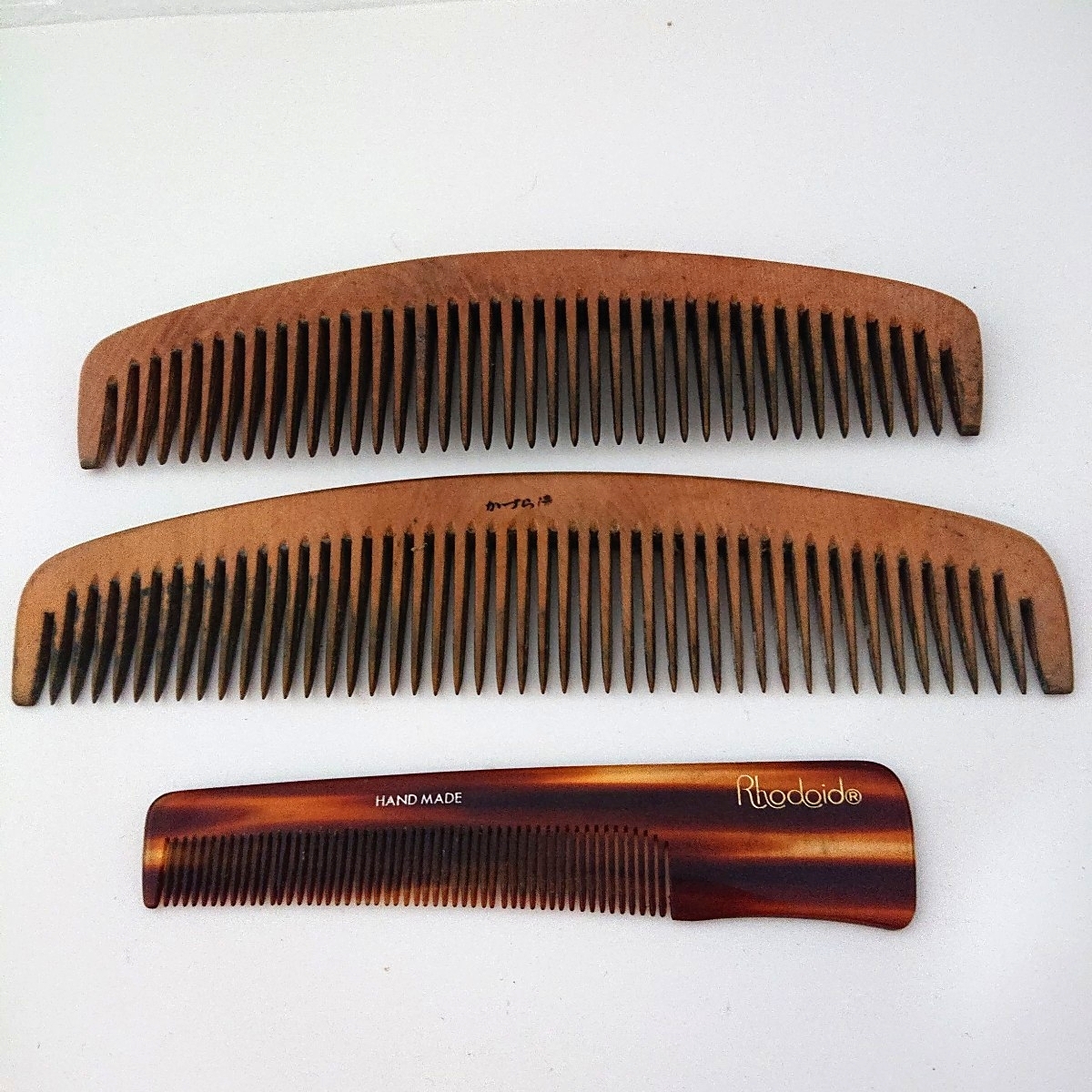 - 【クシ3点セット】櫛 くし べっ甲調クシ コーム 和装小物 木製 当時物 現状品 ぷらみ 0905 19