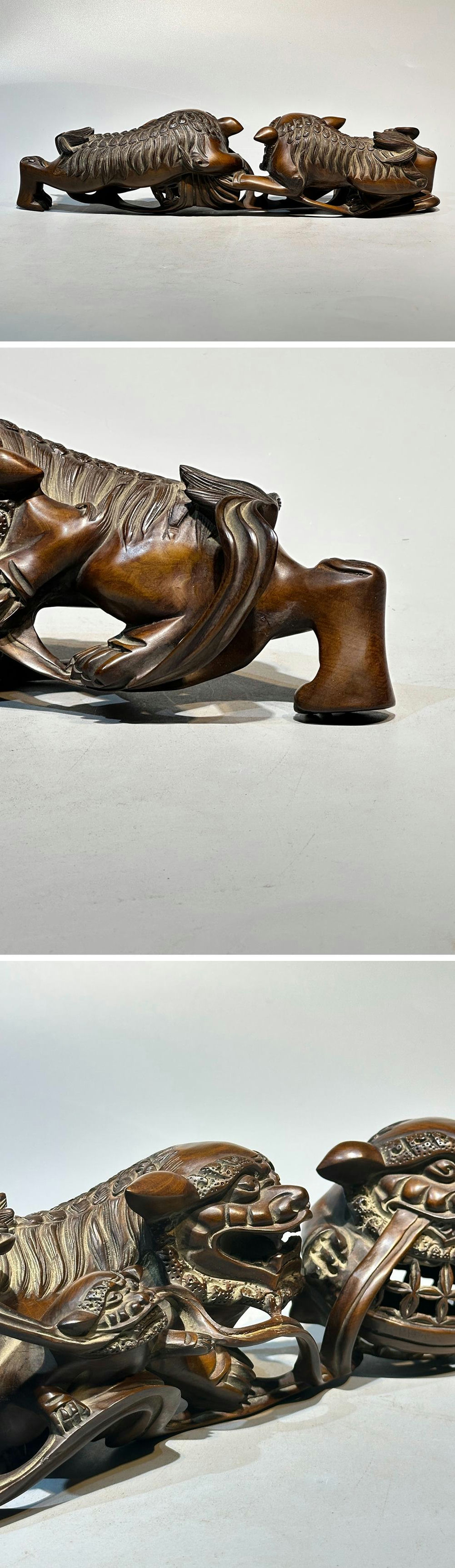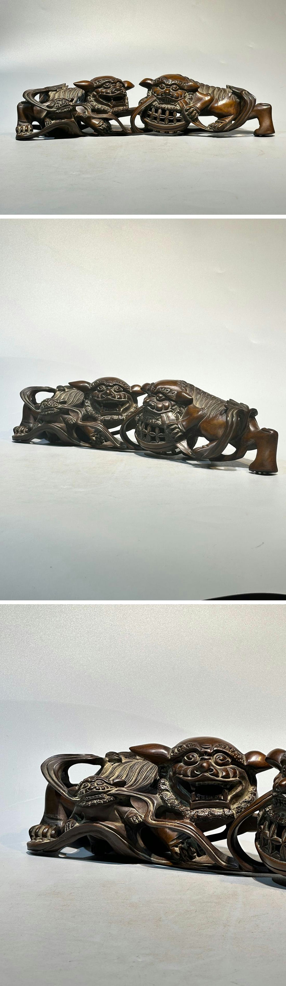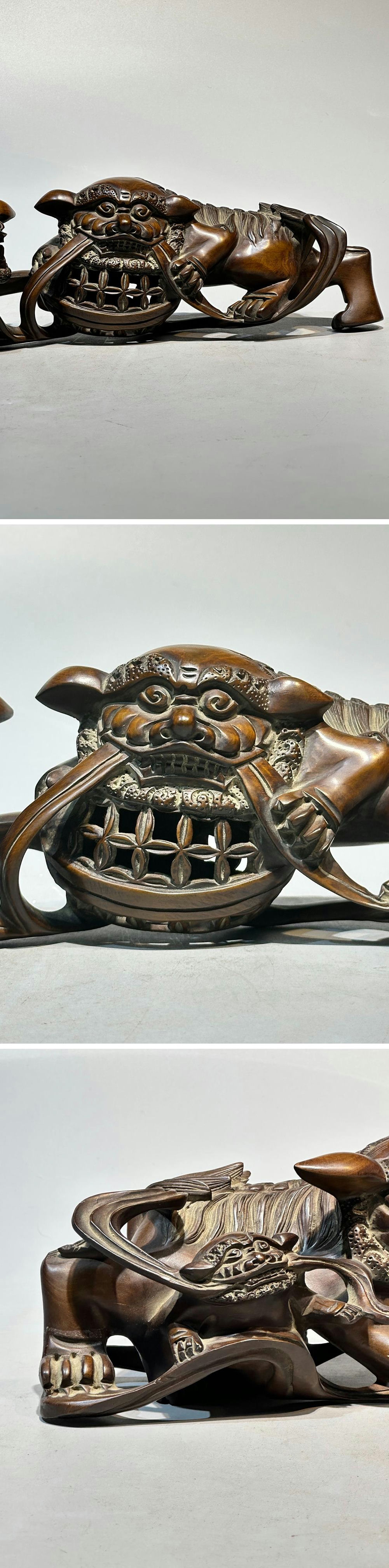 - ■観心・時代旧蔵■K0791清時代 黄花梨獅子球置物 黄花梨木細密細工★古置物★古賞物★古擺件★蒐集家放出★唐物