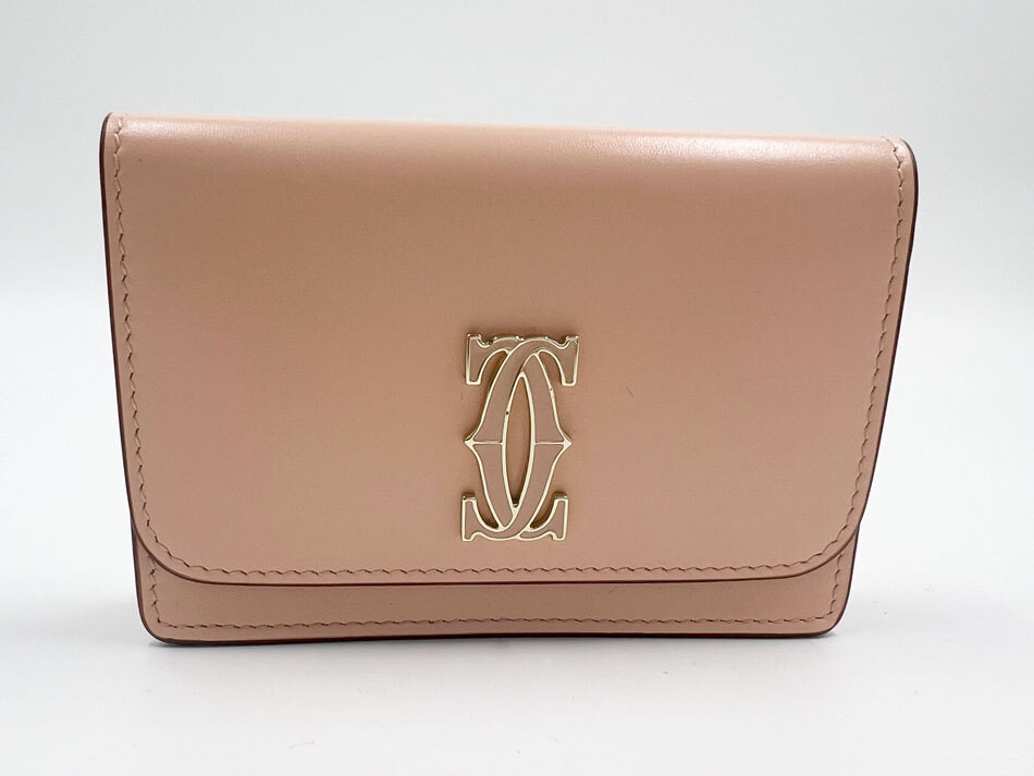 > Cartier カルティエ カードケース 名刺入れ ドゥーブルCロゴ 2つ折り カーフ パウダーピンク L3001902 新品同様