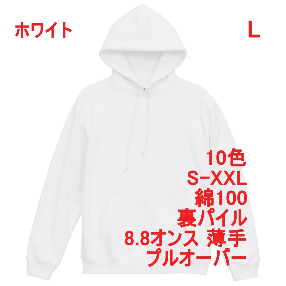 - パーカー L ホワイト 薄手 8.8オンス 裏パイル プルオーバー 無地 定番 シンプル ベーシック スウェット フーディー A2147 白 白色 539801