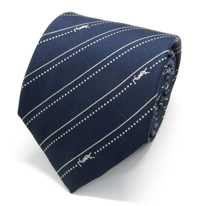 - イヴ・サンローラン ブランド ネクタイ YSL ストライプ柄 ドット シルク 日本製 PO メンズ ネイビー YVES SAINT LAURENT
