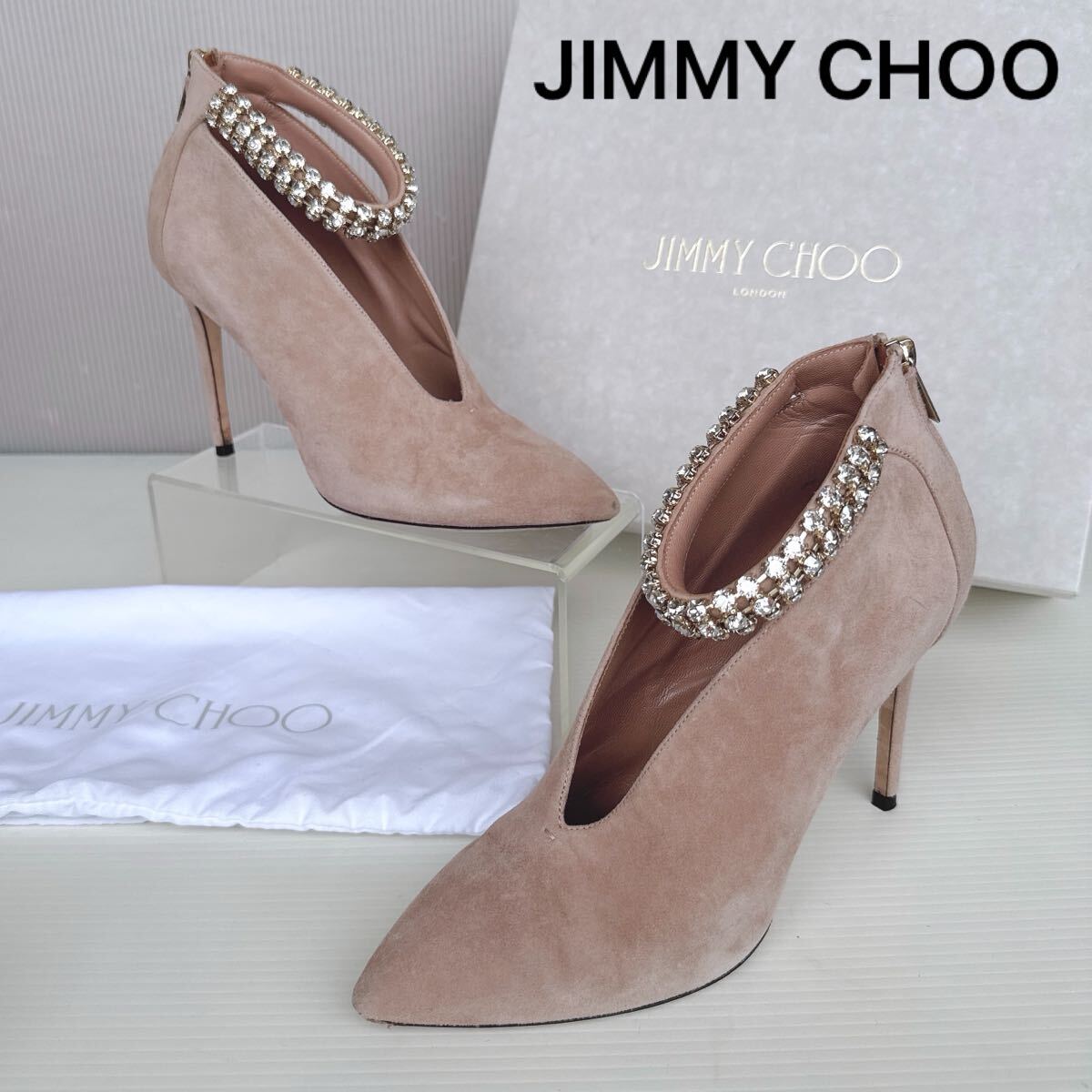 > JIMMY CHOO ジミーチュウ クリスタル ビジュー ハイヒール バックジップ ブーティ パンプス 38 レーディス シューズ 靴 38 スエードレザー