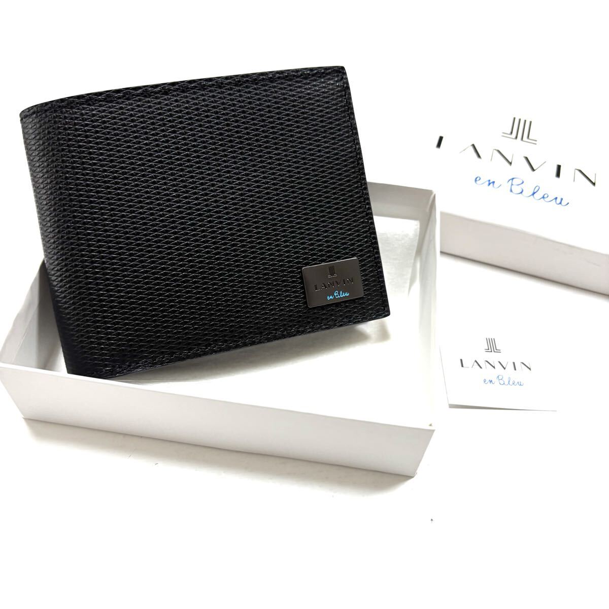 - 新品箱付 ランバン オン ブルー 財布 二つ折り 黒 ハンデ 定価16,400円 581604