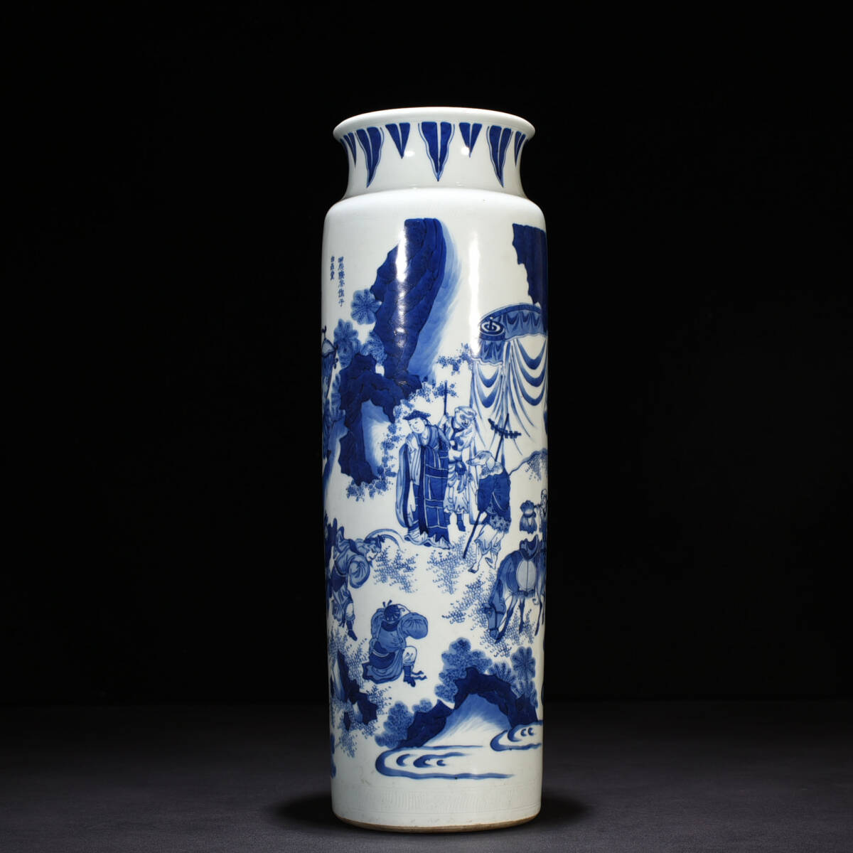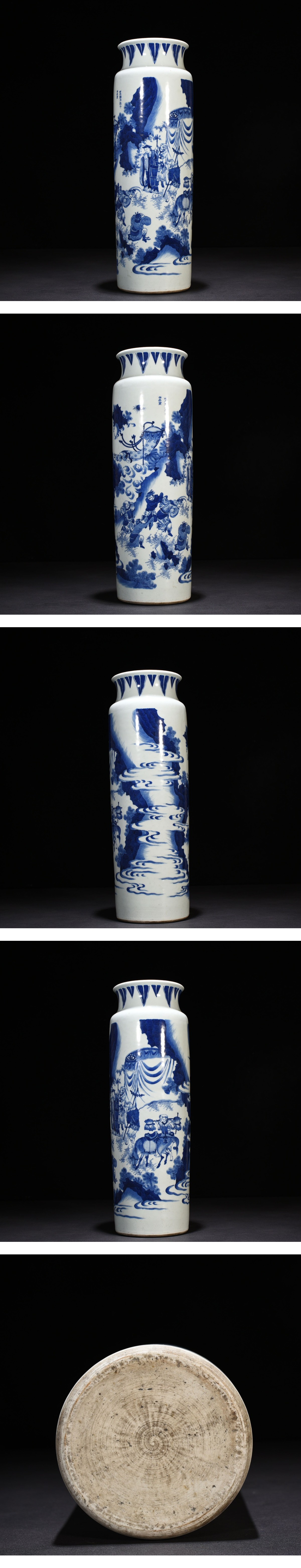 > YY188■明崇禎 青花西遊記人物故事紋筒瓶 時代物 古玩 唐物 古陶磁器■高さ47cm直径15cm■