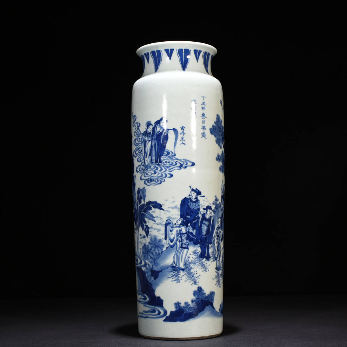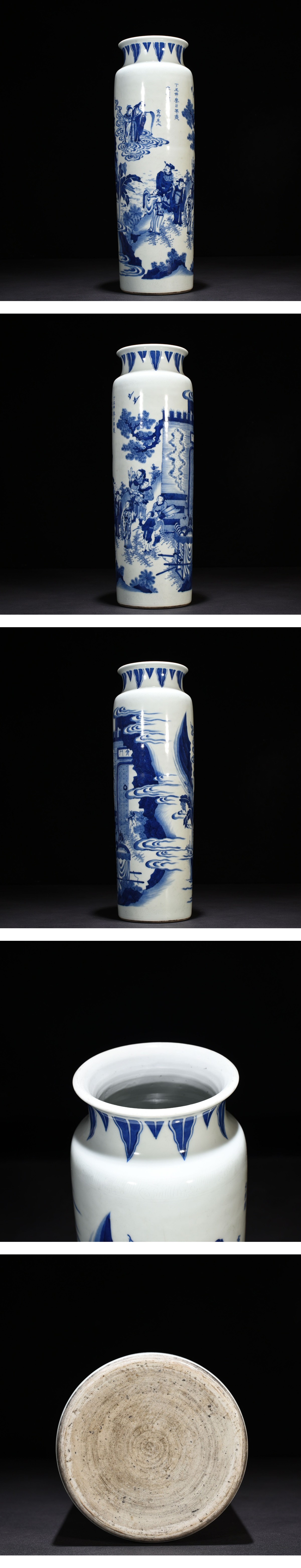- YY187■明崇禎 青花人物故事紋筒瓶 時代物 古玩 唐物 古陶磁器■高さ47cm直径15cm■