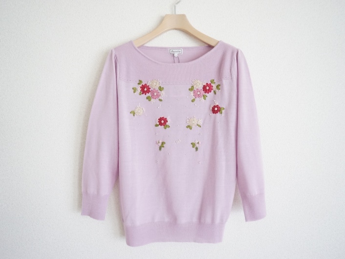 - 【定価1.6万】アナトリエ お花刺繍パール ニット36ラベンダーab1 anatelier