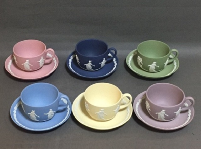 - ◎ウェッジウッド ジャスパー ティーカップ&ソーサー 6色6客セット 「6人の踊り子」◎s