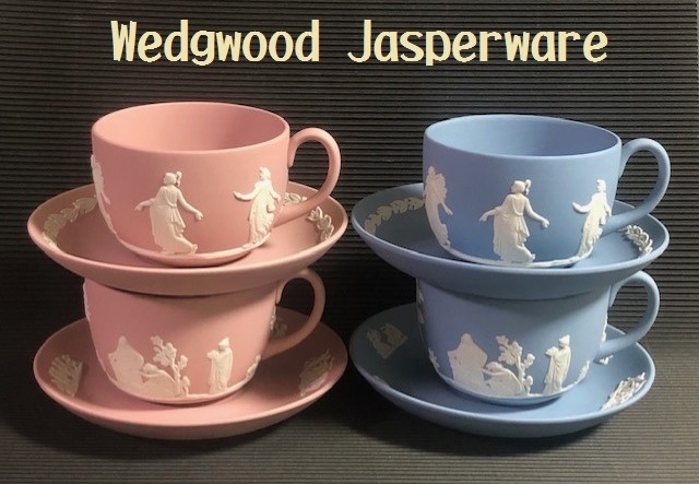 - ◎ウェッジウッド 青とピンク ジャスパー ティーカップ&ソーサー 4種4客セット◎z54