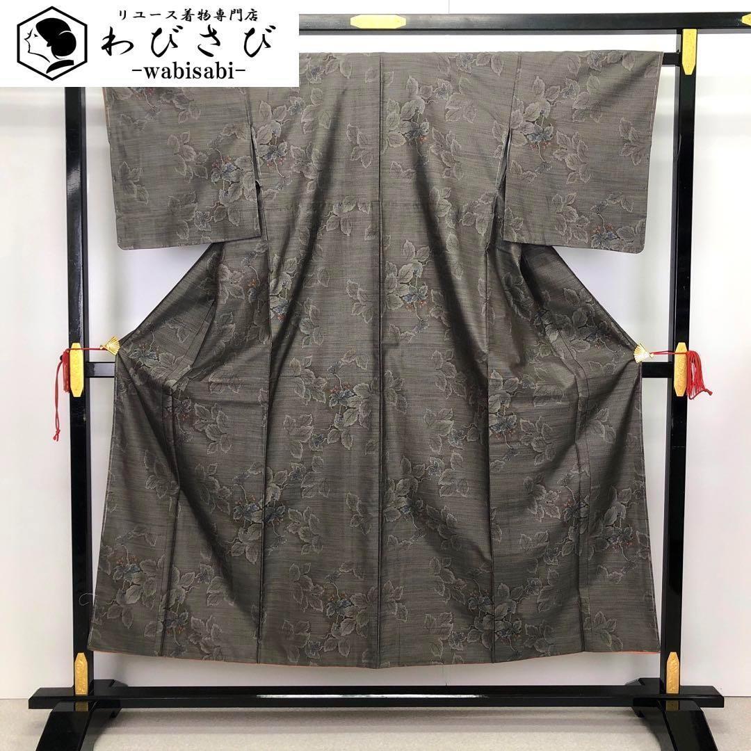 > 本場大島紬 横双絣 花と葉模様 茶泥染 しつけ糸 K-2960 着物 きもの kimono 和服 和装 中古 リサイクル着物 【送料無料】