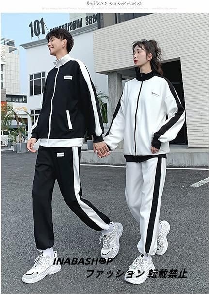 - 春秋 ペアウェア 2点セット ジャージ 上下セットアップ メンズレディース スウェット ジップパーカー カップル カジュアル ゆったり 韓国風