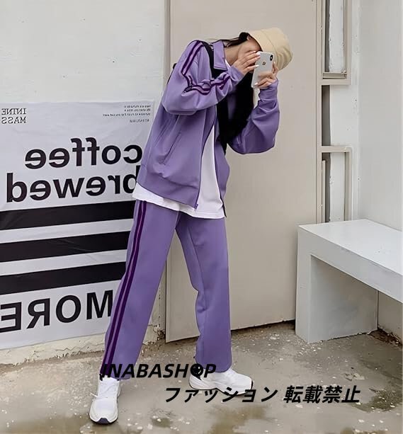 - 韓国風 ジャージ 上下セット レディース スウェット 2点セットアップ パーカー アクティブウェア カジュアル スポーツ ゆったり