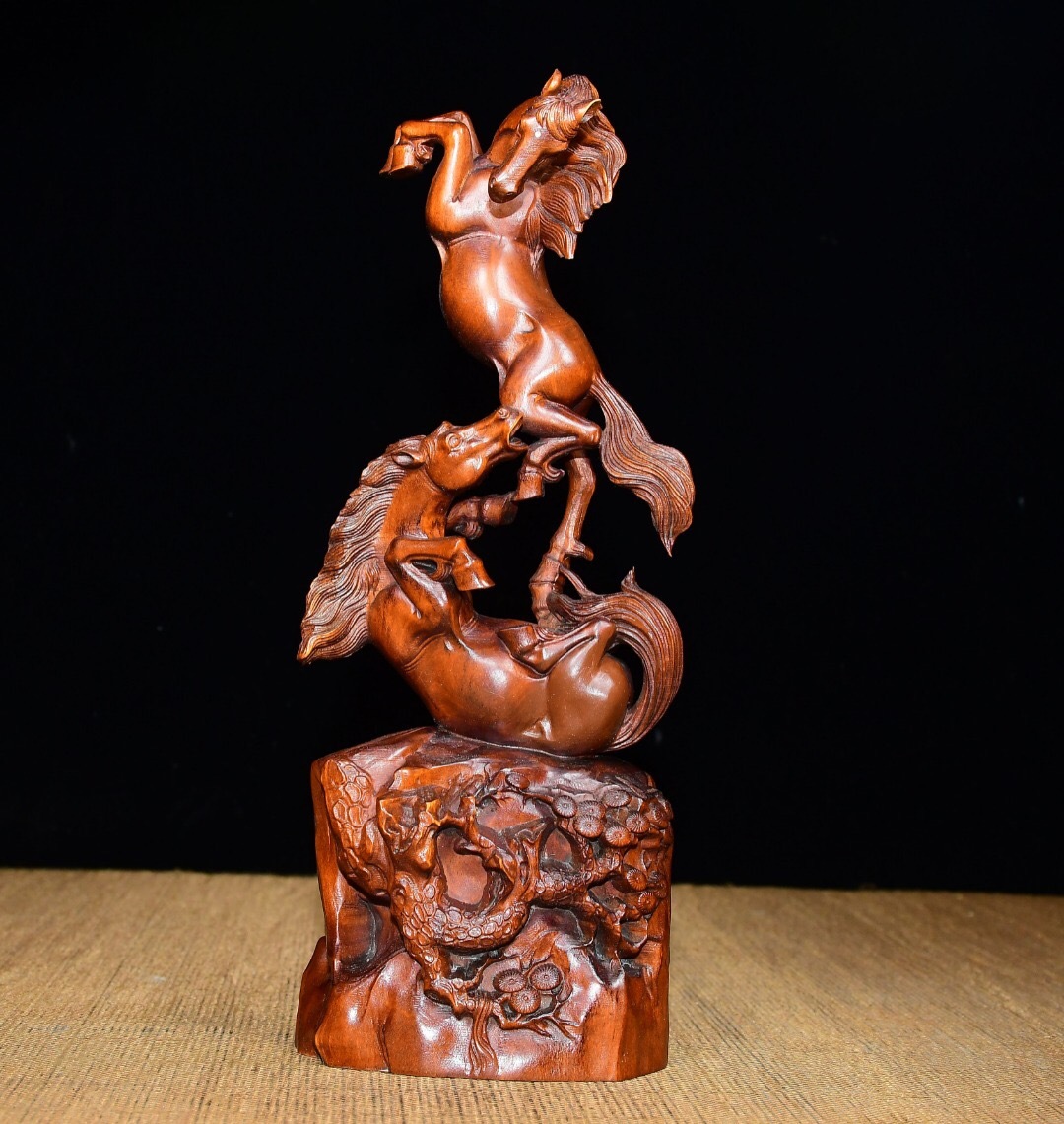 - 『館蔵珍品 黄楊木製 細密彫 馬踏飛燕 置物 賞物』稀少珍蔵品 古賞物 貴重物品 収蔵品 中国古美術 時代物 古董品