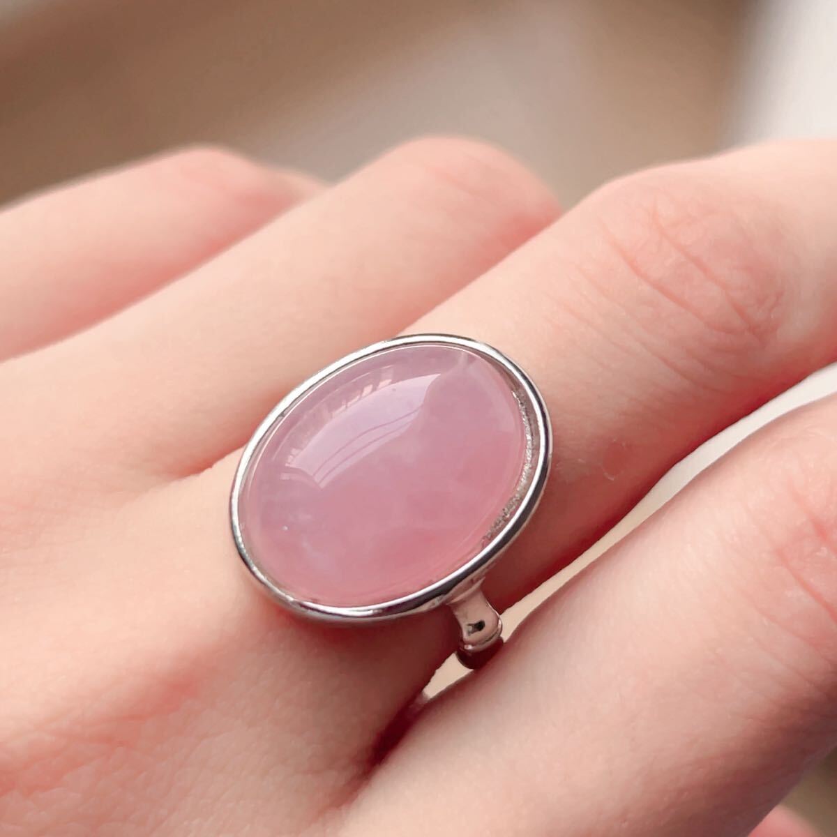 - ◇ローズクォーツ(紅水晶)指輪◇リング◇フリーサイズ◇天然石◇パワーストーン◇巾着袋付き◇プレゼントにも 039R9610