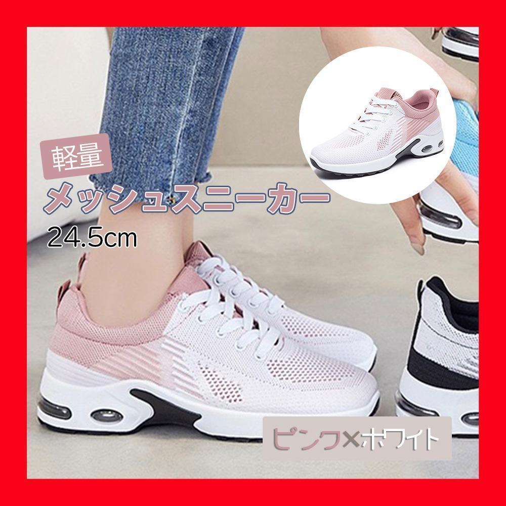 - ランニングシューズ 24.5㎝ ピンク×ホワイト スニーカー 運動靴 散歩 運動