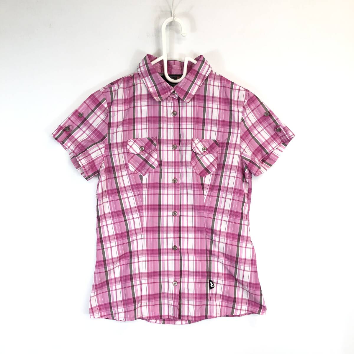 - MILLET ミレー 半袖ボタンシャツ ピンク系 チェック柄 レディースMサイズ