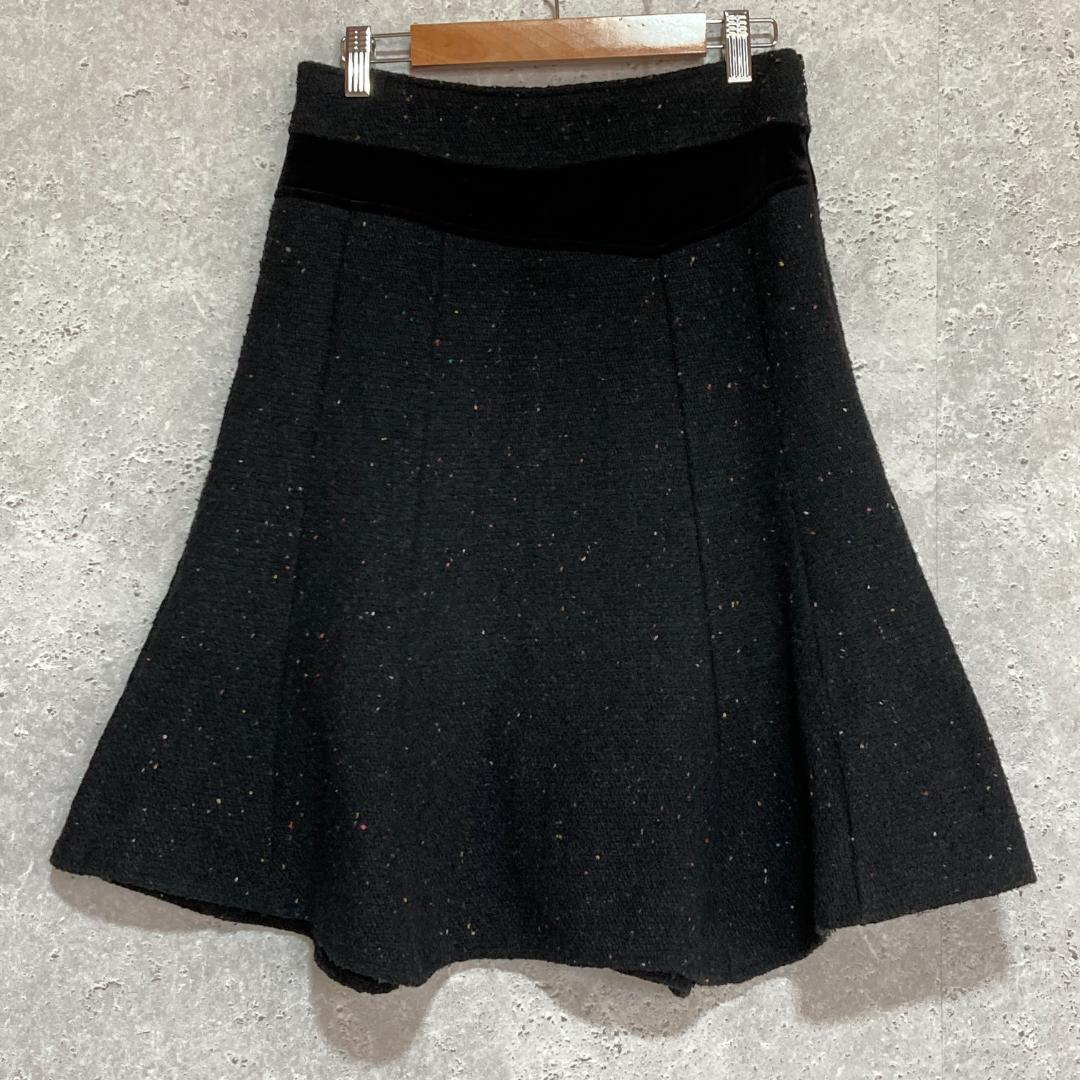 - 【O.K】オーケー(S)フレアスカート*ツイード*膝丈*裏地*ミディ丈*ブラック