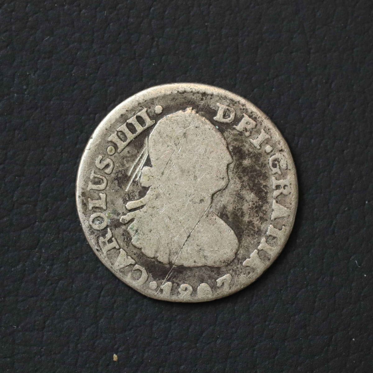 - [令]メキシコ 銀貨 1/2レアル(1807)スペイン,コイン Mexico Silver Coin, 1/2 Real 1807[E9899]7q9