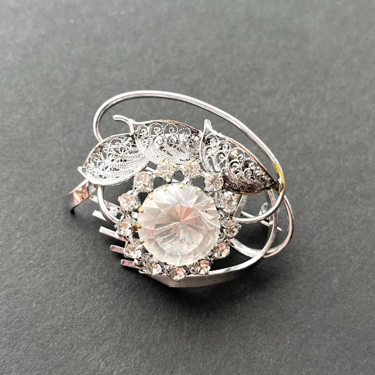 - ブローチ フラワー 花 金属 豪華絢爛 レディース ヴィンテージ レトロ ラインストーン アクセサリー シルバーカラー クリア