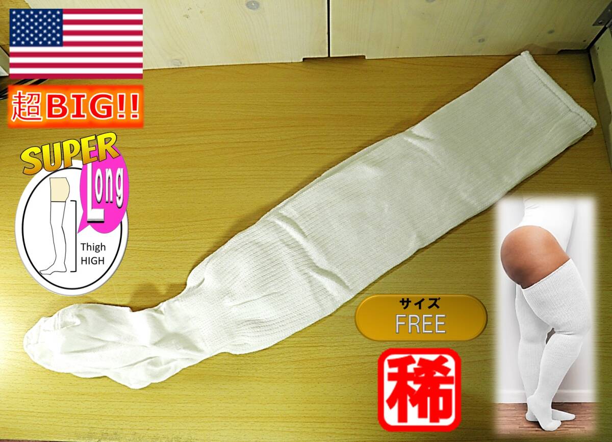 - 【レッグウェア★未使用品】超ビッグ 白 サイハイソックス◆ブーツソックス◆ルーズにも◆プラスサイズ◆FREEサイズ◆稀少◆