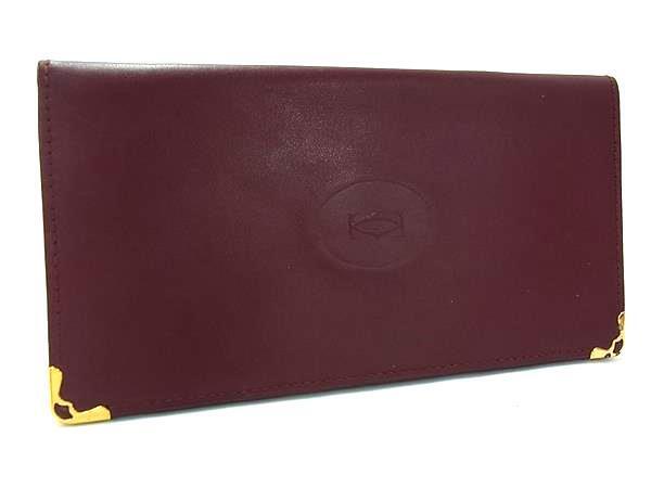 > カルティエ 財布 マストライン レザー - 二つ折り長財布 ゴールド金具 ボルドー系 ロングウォレット 小銭入れ【本物保証】